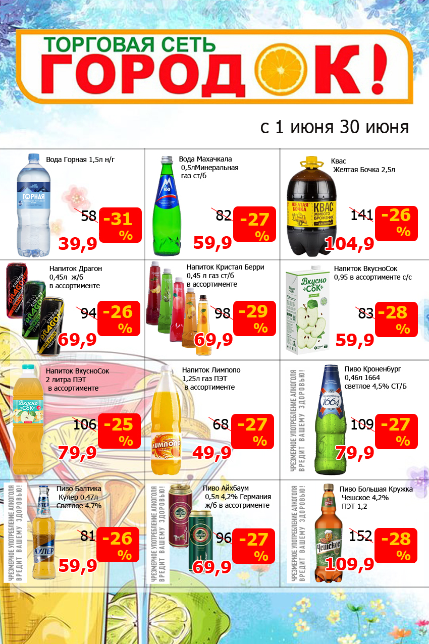 Напитки с 1 по 30 июня 2023 год